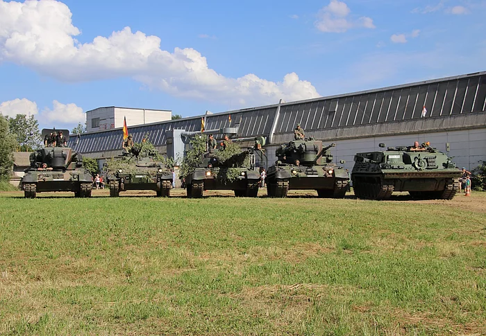 Die statische Panzerausstellung präsentiert eine beeindruckende Auswahl historischer und moderner Kampffahrzeuge. Besucher erhalten die Möglichkeit, Panzer aus verschiedenen Epochen aus nächster Nähe zu betrachten und mehr über ihre technische Entwicklung, Einsatzgeschichte und Bedeutung im militärischen Kontext zu erfahren. Informationstafeln und anschauliche Exponate vermitteln spannende Einblicke in Konstruktion, Bewaffnung und den Alltag der Besatzungen.