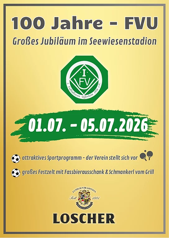 100 jähriges Vereinsjubiläum des 1.FV Uffenheim mit sportlichen Highlights und großem Unterhaltungsprogramm