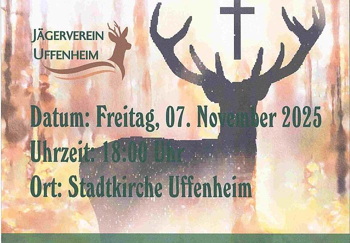 Gemeinsam mit dem Jägerverein Uffenheim wird zur feierlichen und stimmungsvollen Hubertusmesse am Freitag, 7.11.2025 um 18.00 Uhr in die Spitalkirche nach Uffenheim eingeladen, musikalisch umrahmt von Jagdhornklängen. Im Anschluss werden Wildeintopf, Glühwein und Waffeln angeboten. Die Verantwortlichen versprechen einen Abend für alle Sinne und laden herzlich ein.