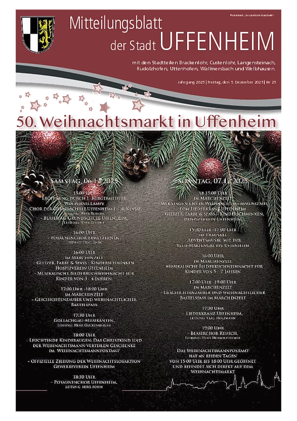 Anzeigenannahme: Stadt Uffenheim, Christine Rosenwirth, Tel. 09842 207-31, Mail: christine.rosenwirth@uffenheim.de