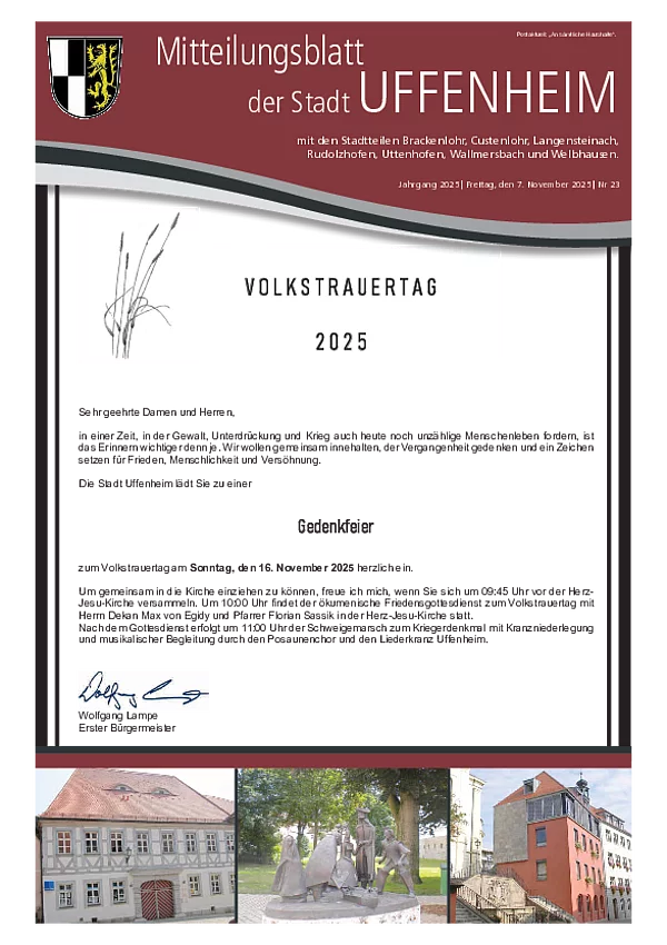 Das nächste Mitteilungsblatt im Jahr 2025 erscheint in der 47. KW. Redaktionsschluss ist Dienstag, 11.11.2025 um 10:00 Uhr!